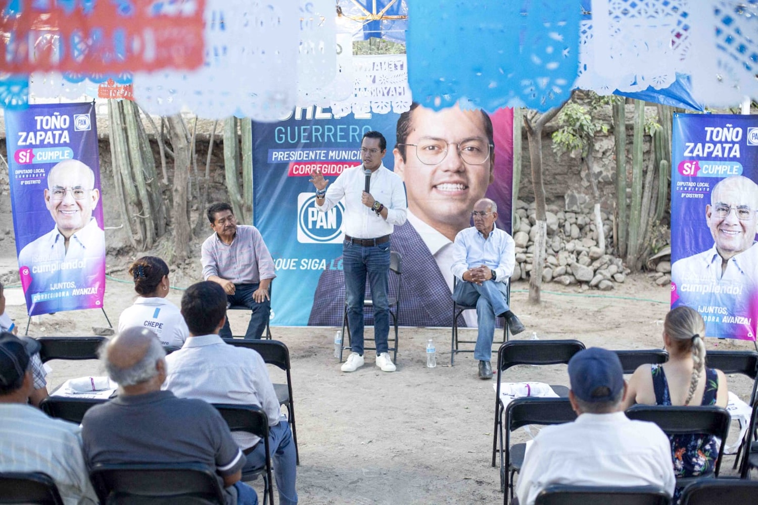 Chepe Guerrero, candidato a presidente municipal de Corregidora por el Partido Acción Nacional (PAN), sostuvo un encuentro con vecinos de El Pueblito, dónde aseguró que trabajará para atraer más eventos culturales al centro de la cabecera municipal, así como dignificar el atrio del Santuario de la Virgen de El Pueblito para promocionarlos turísticamente y que siga lo bueno atrayendo más visitantes al municipio.