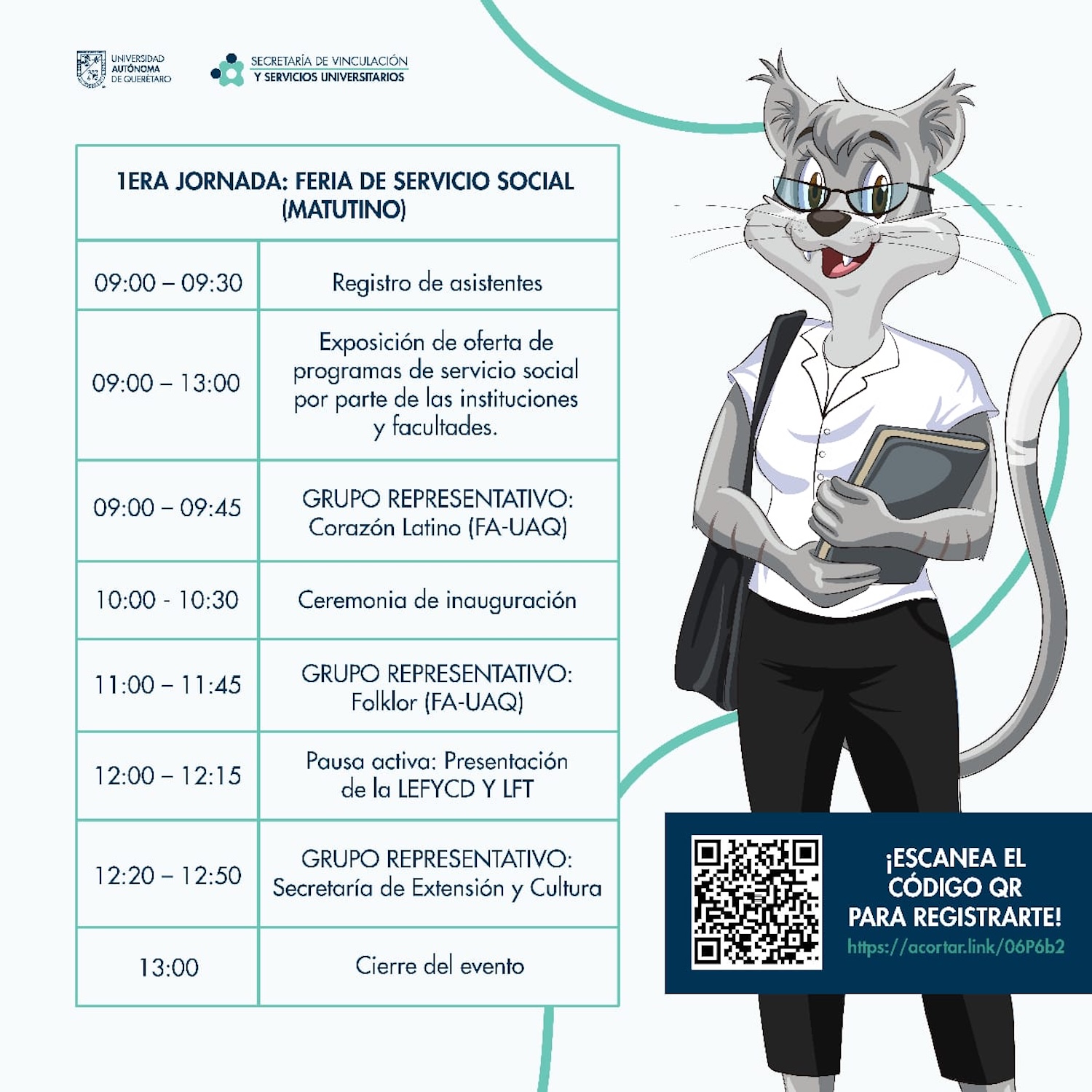 Se contempla que el 6 de agosto, desde las 09:00 horas, entre actividades culturales y físicas, se realice la oferta de propuestas de programas de servicio social; y a partir de las 14:00 horas del mismo día, se lleve a cabo la exposición de prácticas profesionales, vacantes laborales y profesionalización, así como conferencias y talleres clave para las y los interesados, por ejemplo: “Estudiar y trabajar: dilemas personales e institucionales”, “Cómo elaborar un CV”, “SAT para principiantes”, entre otras.