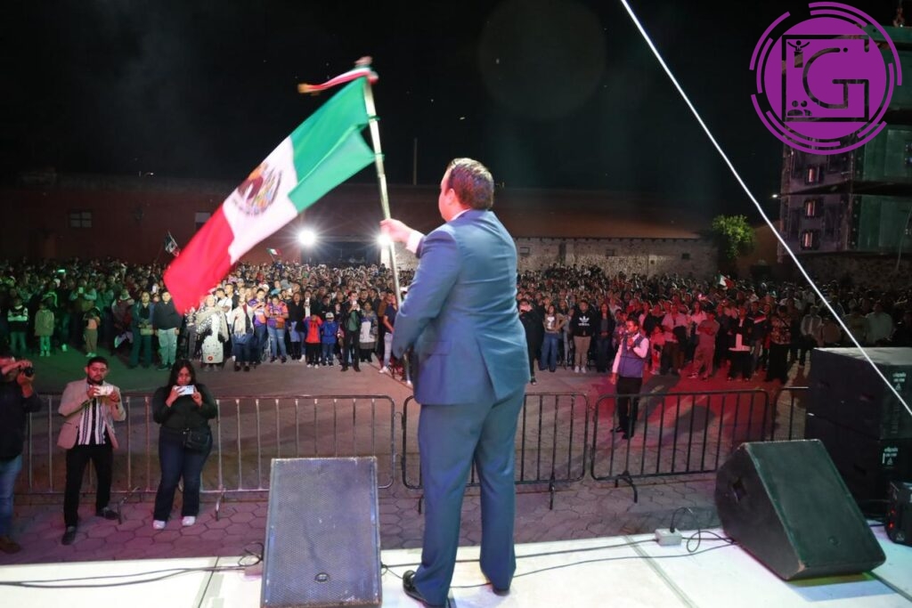 Desde el balcón del Palacio Municipal, el alcalde —acompañado de su esposa Elena Arreguín de la Torre— recordó a los personajes históricos, fundamentales en la lucha por la Independencia de México y que fueron testimonio del cambio en la nueva historia de la nación.